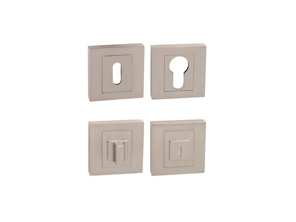 Hranatá rozeta je vyrobena ze zamaku a hliníku a je povrchově upravena. Rozeta má rozměry 52 mm x 52 mm, tloušťku 10 mm a oválný otvor pro interiérový klíč (BB), otvor pro cylindrickou vložku (PZ) nebo WC set s vmontovaným klíčem. Balení obsahuje 2 kusy rozet (pár) a rozety WC jsou v balení jako set.