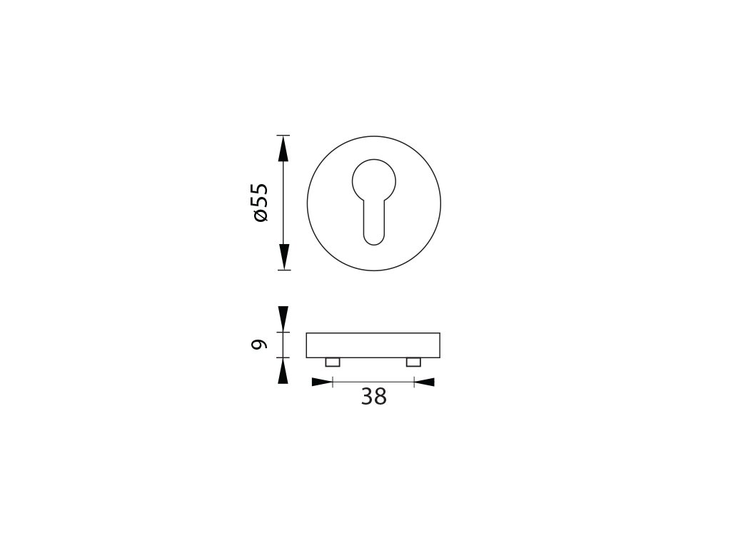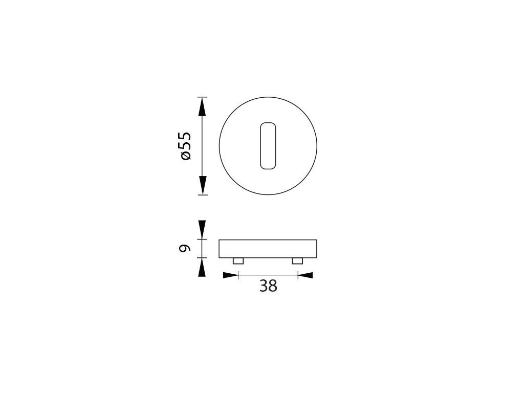 Kulatá rozeta je vyrobena z vysoce kvalitní nerezavějící oceli, známé jako nerez a je povrchově upravena. Rozeta má průměr 54 mm, tloušťku 9 mm a oválný otvor pro interiérový klíč (BB), otvor pro cylindrickou vložku (PZ), WC set s vmontovaným klíčem, WC set s vmontovaným klíčem a ukazatelem nebo rozeta bez otvoru tzv. záslepka. Balení obsahuje 2 kusy rozet (pár) a rozety WC jsou v balení jako set.