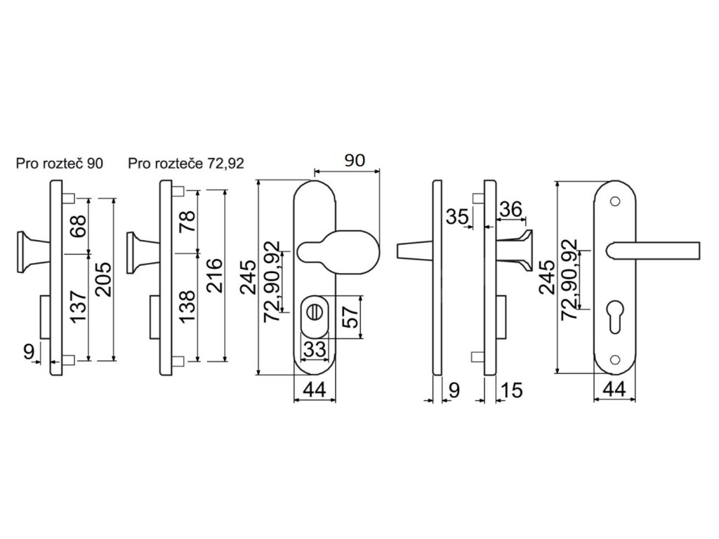 • pro správnou funkci kování je třeba, aby cylindrická vložka přesahovala vnější okraj dveří o 15–18 mm