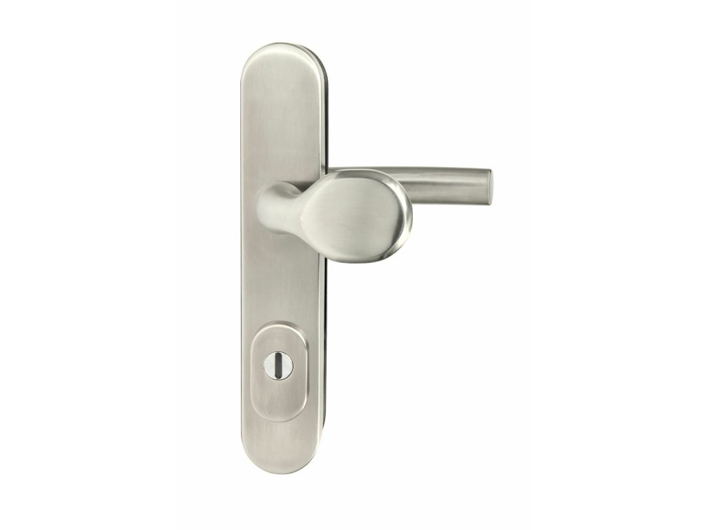Štítová klika na vchodové a bezpečnostní dveře se zpevněným oválným štítem s překrytím cylindrické vložky je vyrobena z vysoce kvalitní nerezavějící oceli, známé jako nerez a je povrchově upravena. Možnost kombinace všech druhů klik z ekonomické série.