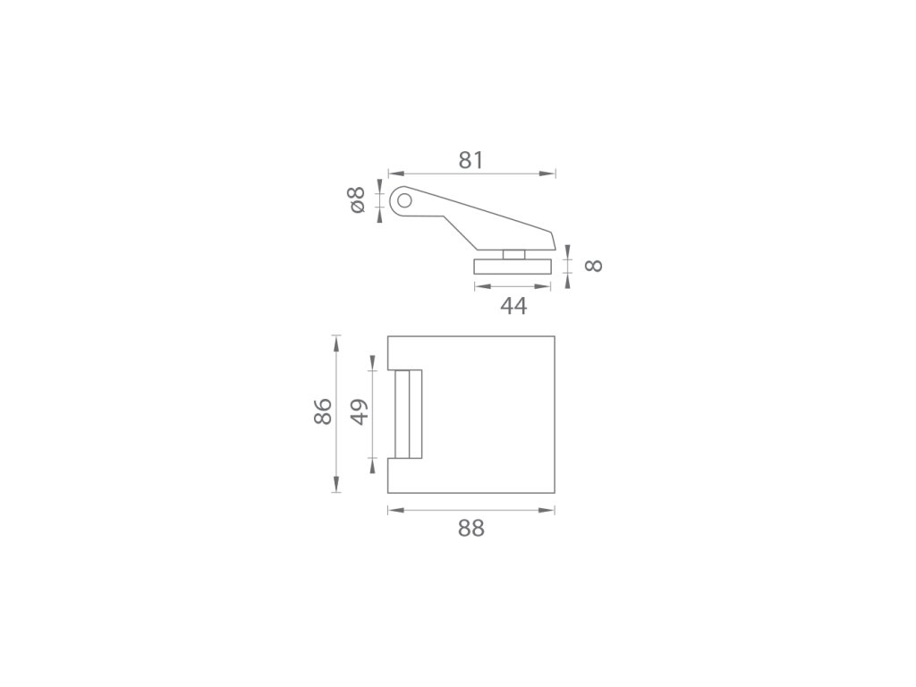 Vhodný pro tloušťku skla 8 – 10 mm. Maximální nosnost pantů je 45 kg. Maximální šířka skla je 865 mm.