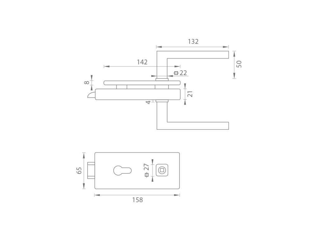 Otvor pro kliku obsahuje vymezovací mechanismus pro maximální eliminování vůle čtyřhranu. Mechanismus zámku umožňuje nastavení síly pružiny a napomáhá udržování kliky v horizontální poloze.