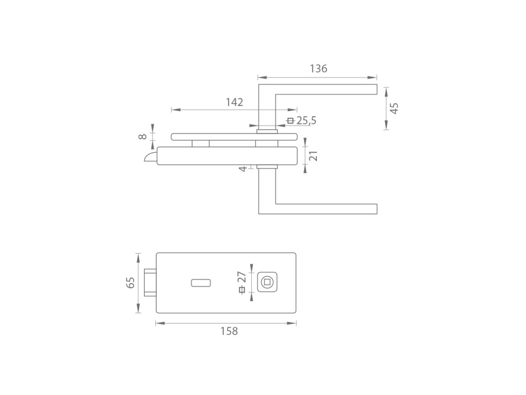 Otvor pro kliku obsahuje vymezovací mechanismus pro maximální eliminování vůle čtyřhranu. Mechanismus zámku umožňuje nastavení síly pružiny a napomáhá udržování kliky v horizontální poloze.