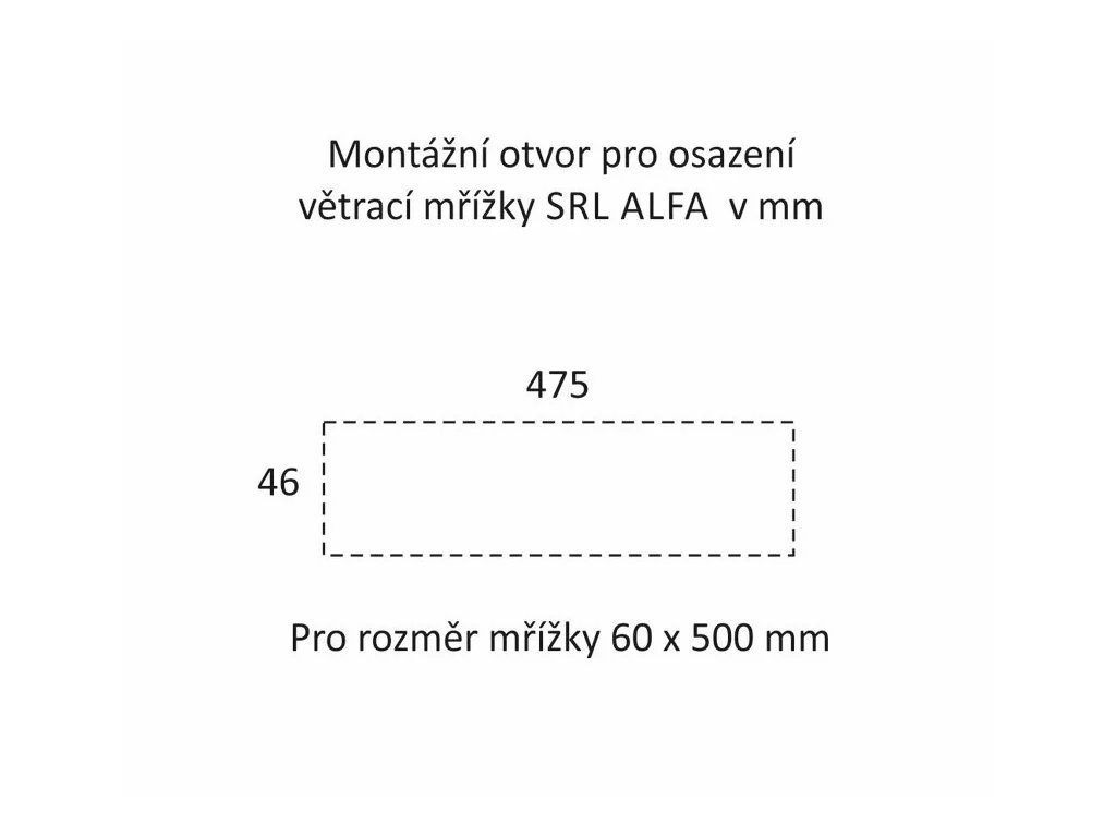 MONTÁŽ: délka montážního otvoru je o 25 mm kratší než je celková délka mřížky (tz.12,5 mm z každé strany ), šířka montážního otvoru je o 14 mm užší než je celková šířka mřížky (tj. 7 mm z každé strany).