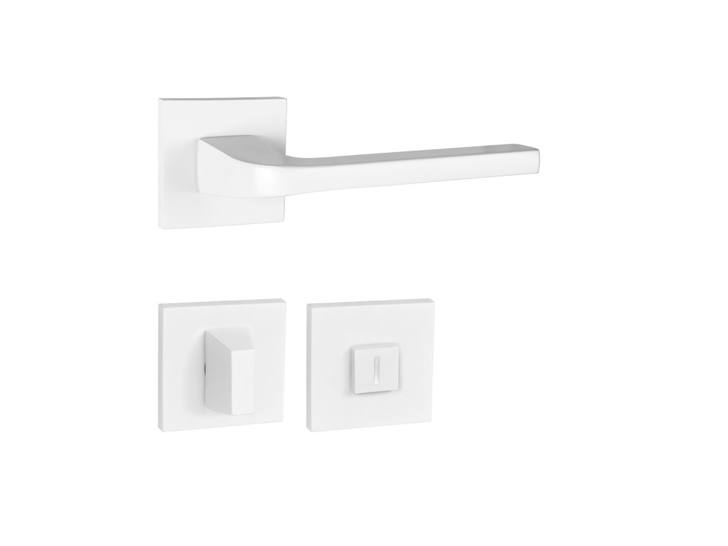 Rozetová klika na interiérové dveře s hranatou rozetou je vyrobena odléváním z kvalitních slitin zinku a hliníku a je povrchově upravena. Klika je povrchově upravována galvanizací a vyznačuje se vysokou odolností proti oděru. Kování je testováno na 100 000 cyklů.