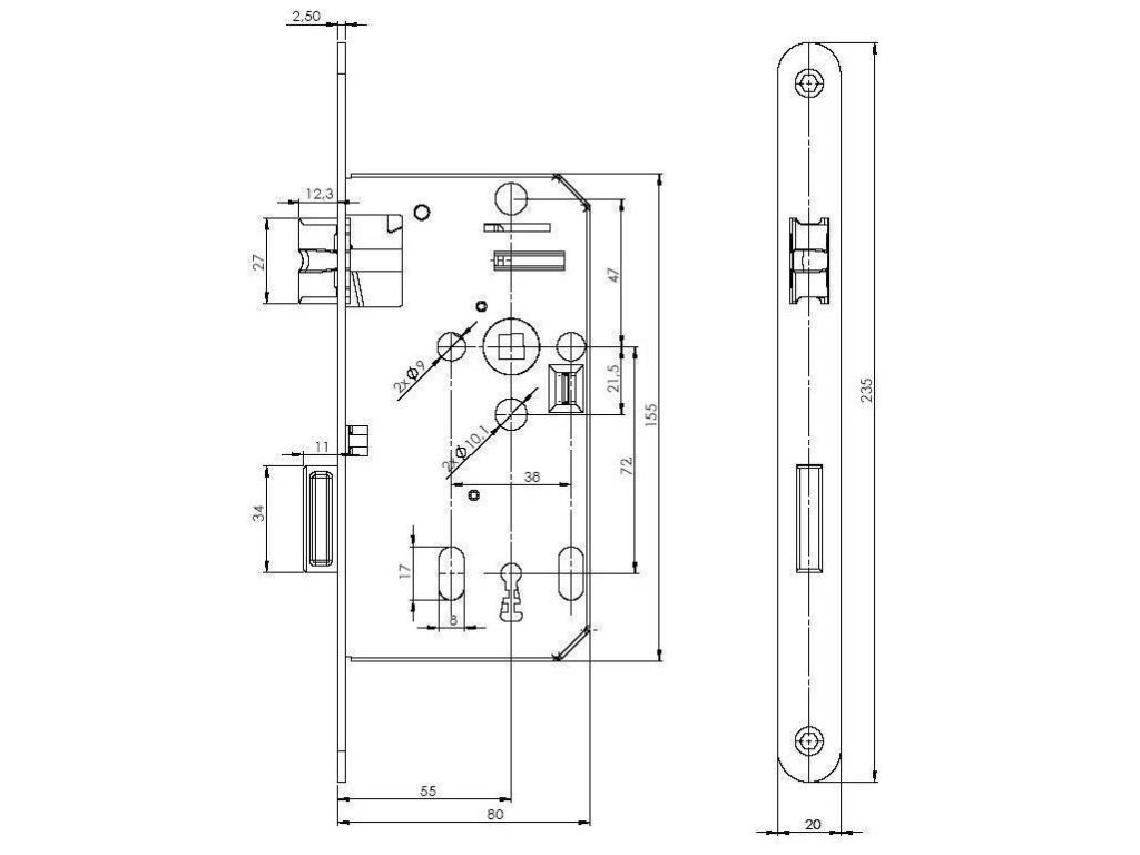 Dormas: 55 mm (vzdálenost osy kliky od lišty zámku)