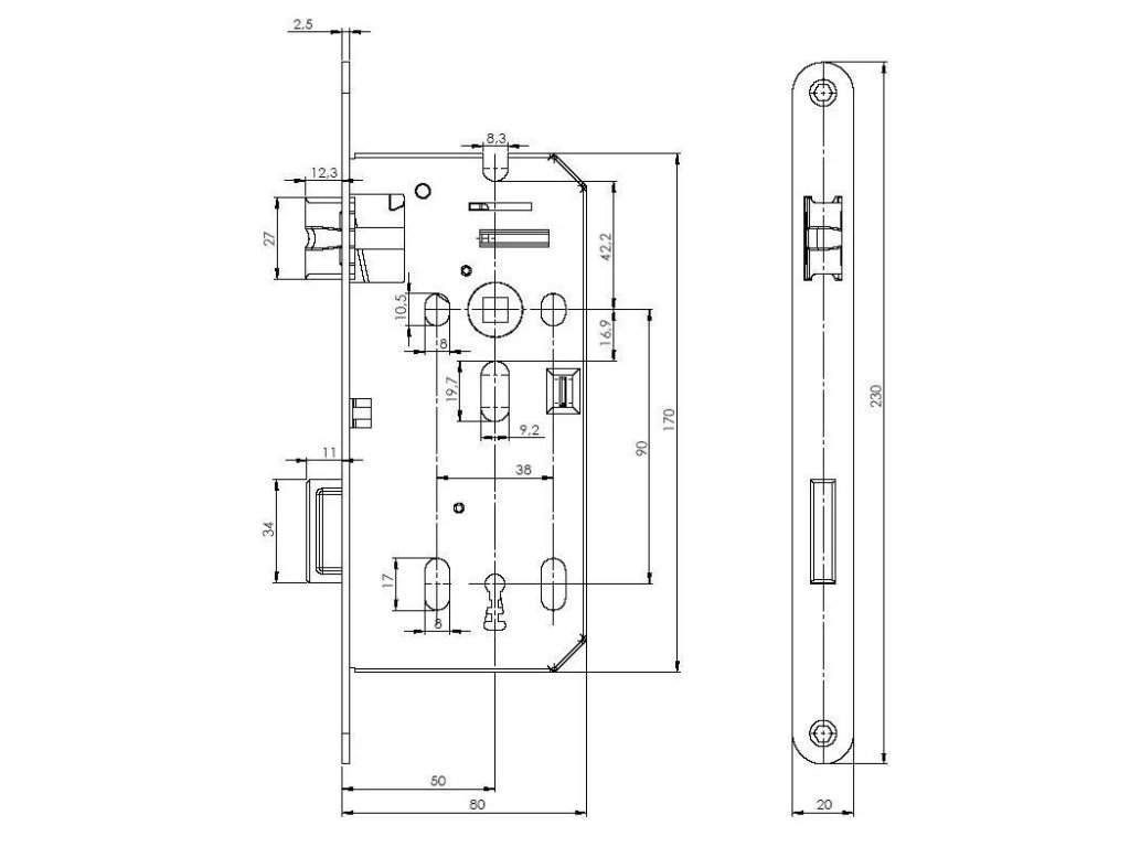 MP - Zadlabací zámek BB 90/80 - C 4250 pozink L+ P