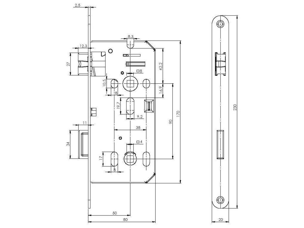 Dormas: 50 mm (vzdálenost osy kliky od lišty zámku)