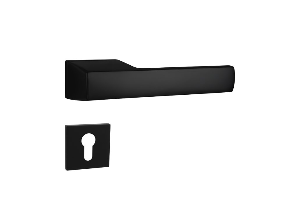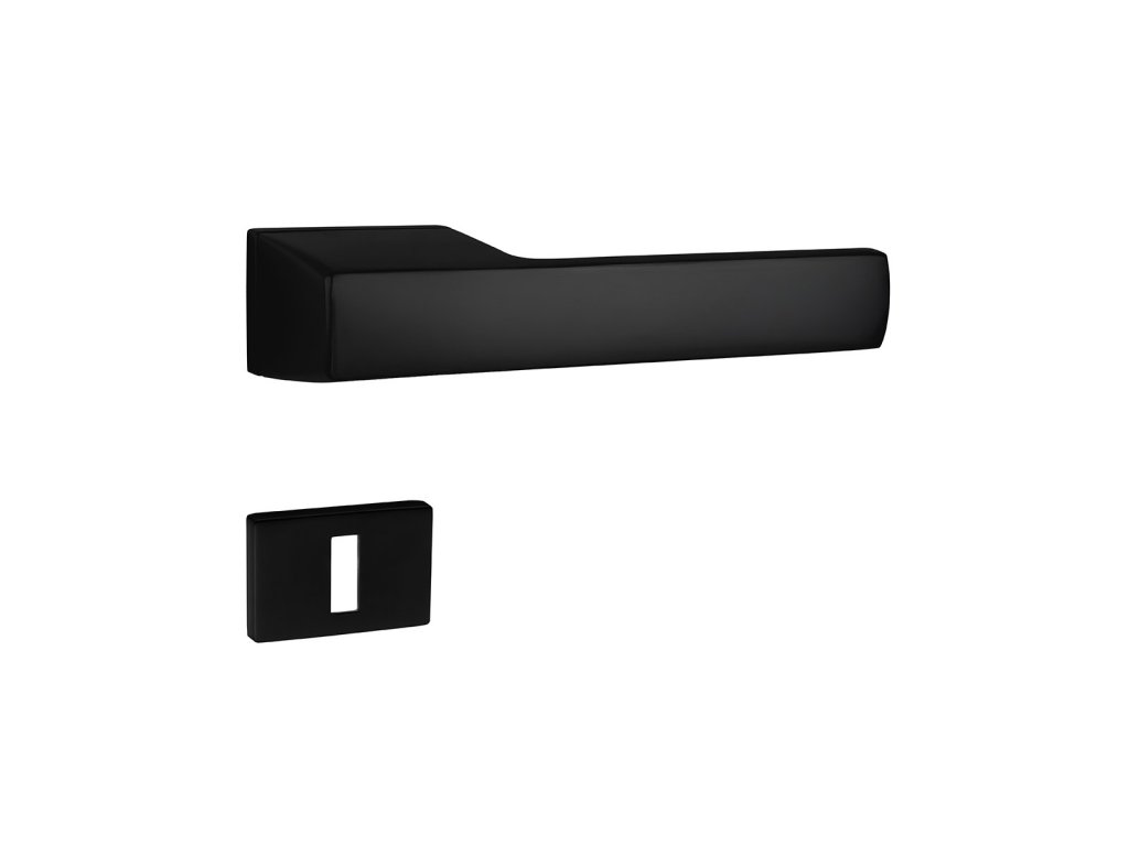 Elegantní obdélníková klika na interiérové dveře je vyrobena z hliníku a rozeta z odolného zamaku. Klika vyniká mimořádně nízkou hmotností a robustní konstrukcí, a proto je manipulace s ní pohodlná i při každodenním používání. Precizní zaoblené hrany rukojeti zajišťují, že její jednoduchý hranatý tvar skvěle padne do ruky. Rozeta s kovovými montážními výstupky je navržena tak, že nepřesahuje obrys kliky.