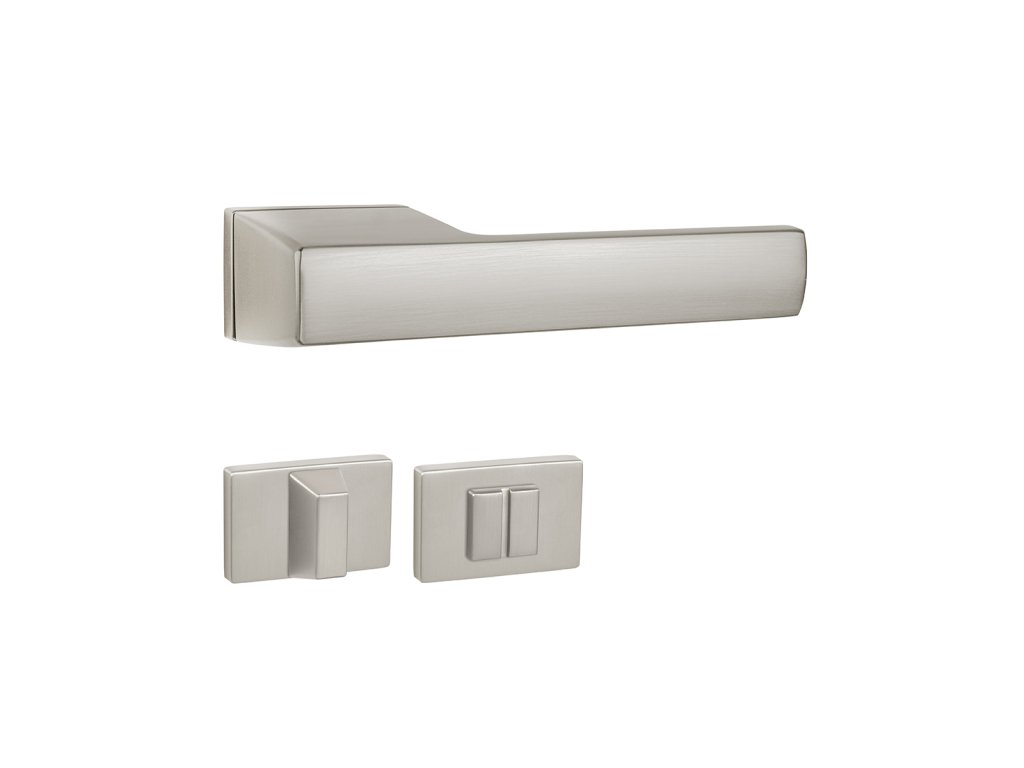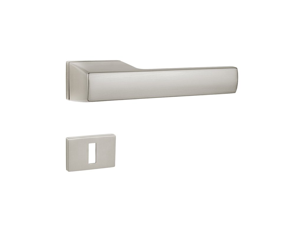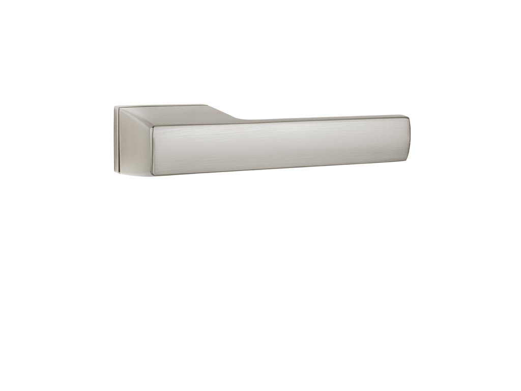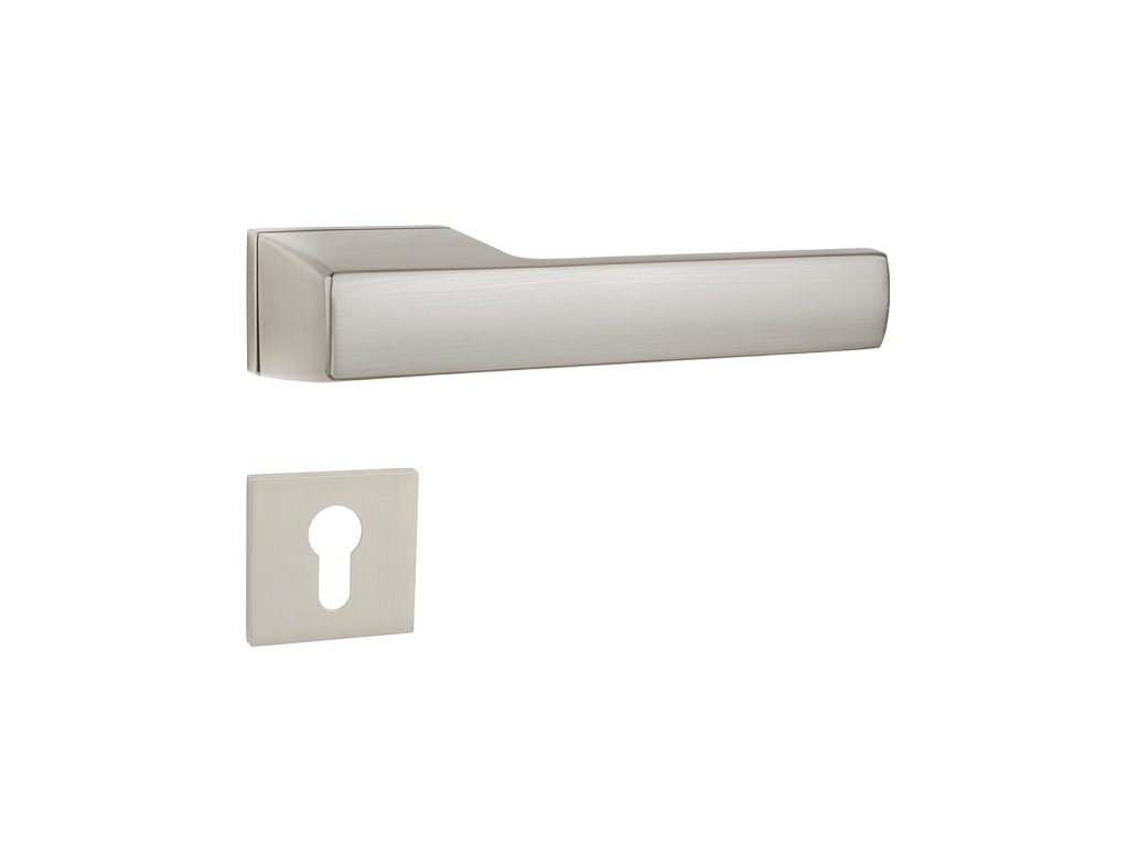 Elegantní obdélníková klika na interiérové dveře je vyrobena z hliníku a rozeta z odolného zamaku. Klika vyniká mimořádně nízkou hmotností a robustní konstrukcí, a proto je manipulace s ní pohodlná i při každodenním používání. Precizní zaoblené hrany rukojeti zajišťují, že její jednoduchý hranatý tvar skvěle padne do ruky. Rozeta s kovovými montážními výstupky je navržena tak, že nepřesahuje obrys kliky.