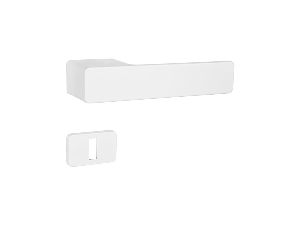 MPK – GRANDERA – RT je rozetová klika na interiérové dveře s elegantní obdélníkovou rozetou a je vyrobena z kvalitního zamaku. Rozeta je plně integrována do designu kliky, což podtrhuje její moderní vzhled.