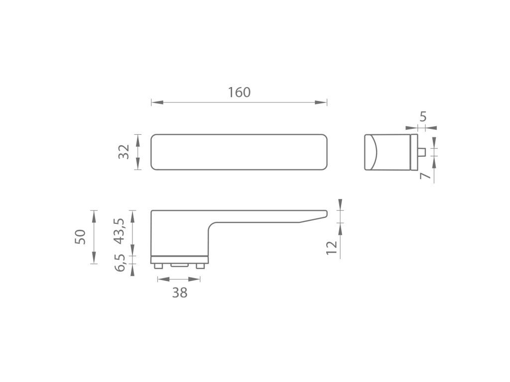 Rozměr kliky: 160 x 50 x 32 mm