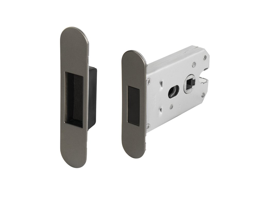 Magnetický zámek je určený pro bezfalcové interiérové dveře, pro kliky bez spodní rozety a kliky s integrovaným uzamykáním. Montážní šrouby jsou překryté elegantní barevnou krytkou. Nastavitelný protiplech k magnetickému zámku je součástí balení.