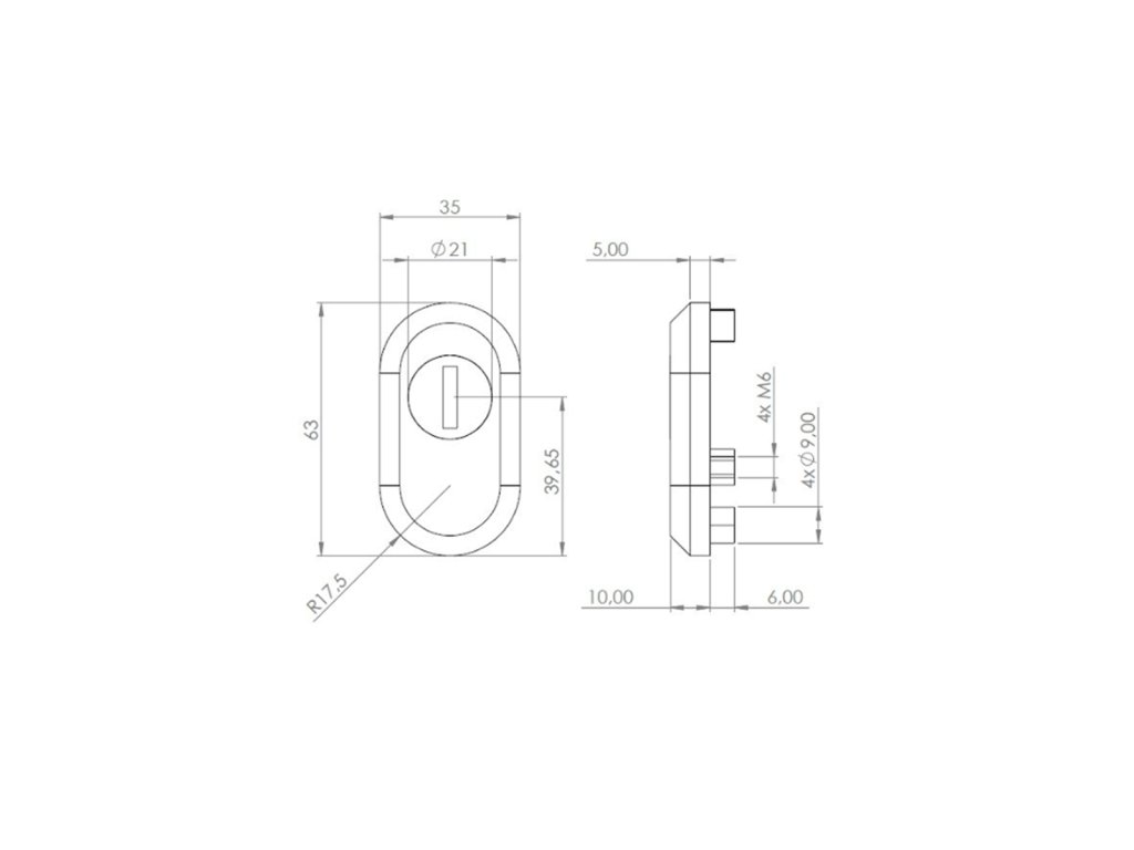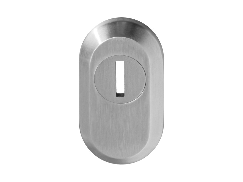 Kování je vyrobeno z masivní, za tepla lisované nerezavějící oceli. Tvar překrytí jsme navrhli tak, aby výrazně ztěžoval odvrtání. Zkosené hrany totiž způsobují, že vrták po povrchu sklouzne. Překrytí je zároveň vybaveno krycím kroužkem bubínku vložky, který odolává odvrtání a vytržení. Nejde jen o designovou krytku, ale o důležitý bezpečnostní prvek.