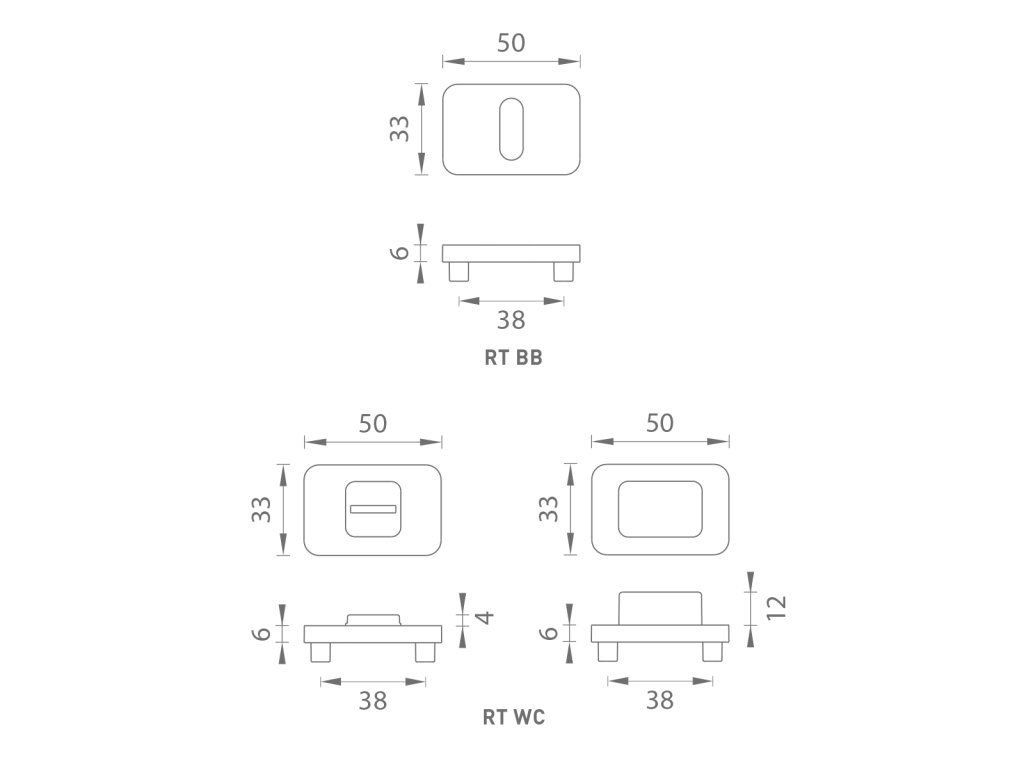 Provedení: rozeta s BB otvorem pro klíč, rozeta s WC klíčem