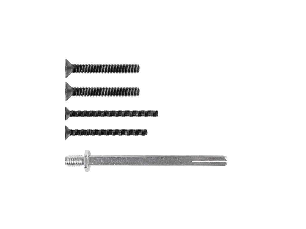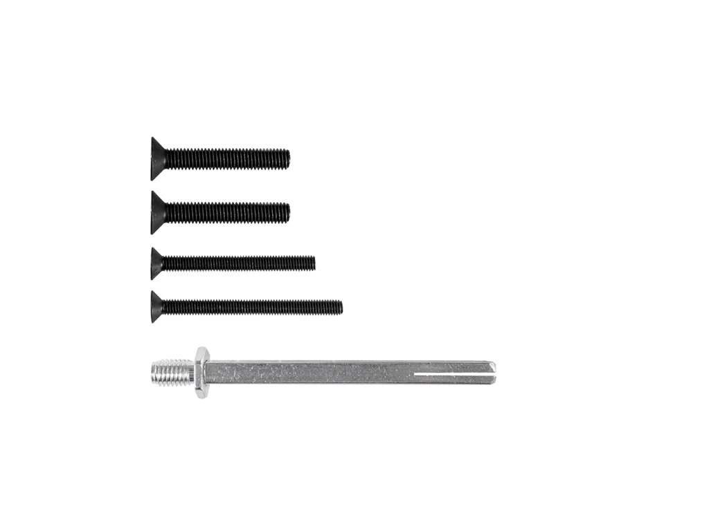 Set obsahuje montážní šrouby a čtyřhran určený pro bezpečnostní kování SECURO S01.