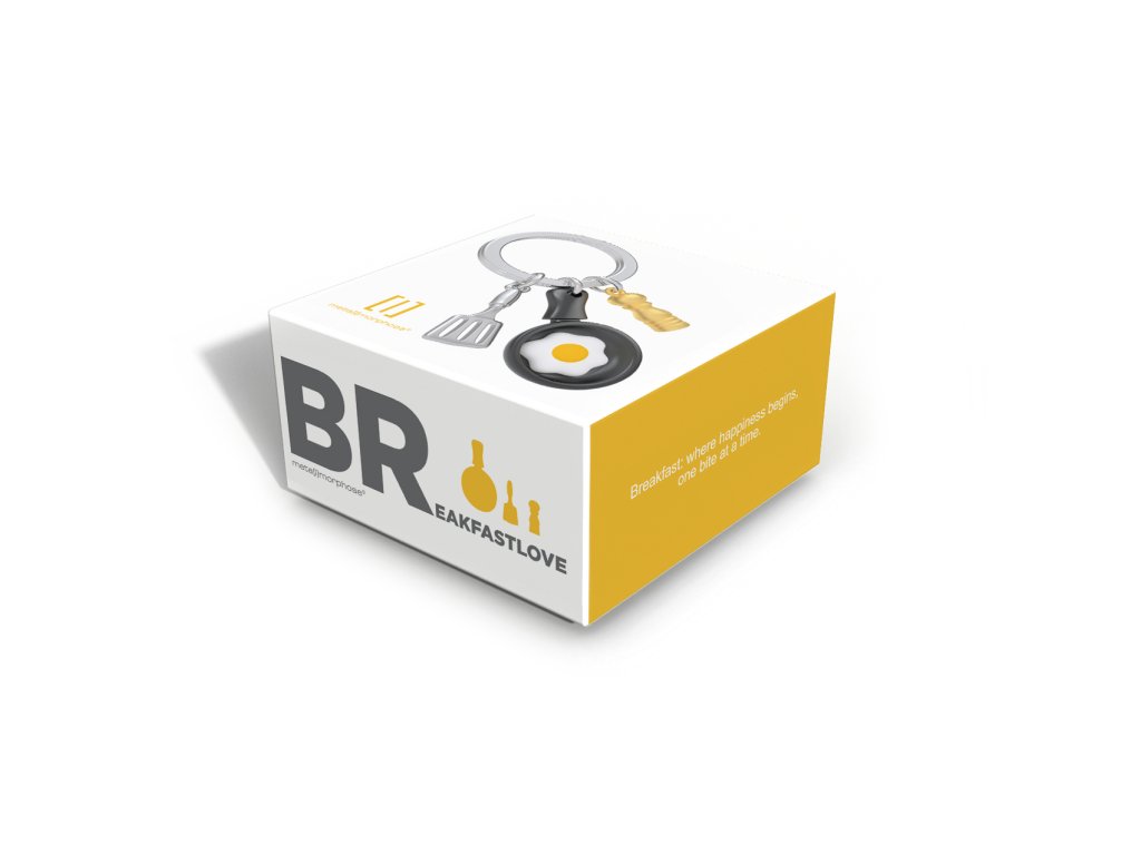 Text na krabičce: Breakfast: where happiness begins, one bite at a time. (Snídaně: kde začíná štěstí, jedno sousto za druhým.)