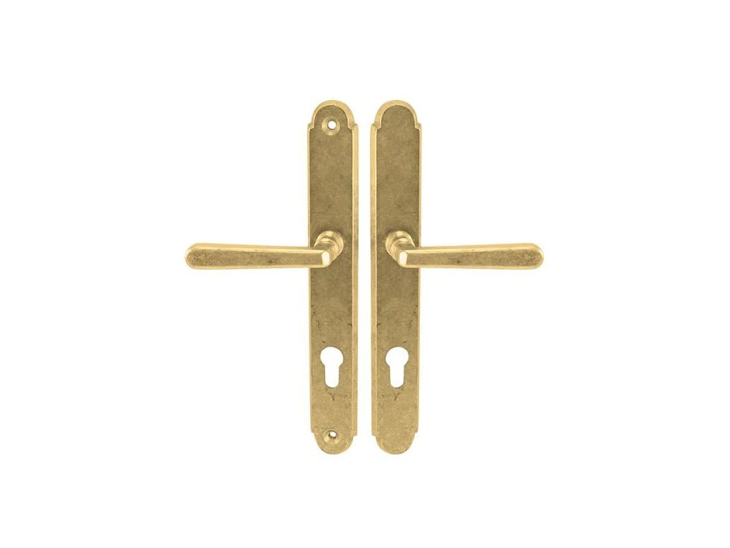 Štítová klika na vchodové a bezpečnostní dveře se zpevněným rustikálním štítem bez překrytí cylindrické vložky je vyrobena z materiálů vysoké kvality - mosaz a je povrchově upravena. Rustikální štít má rozměry 38 mm x 280 mm a tloušťku 11 mm.