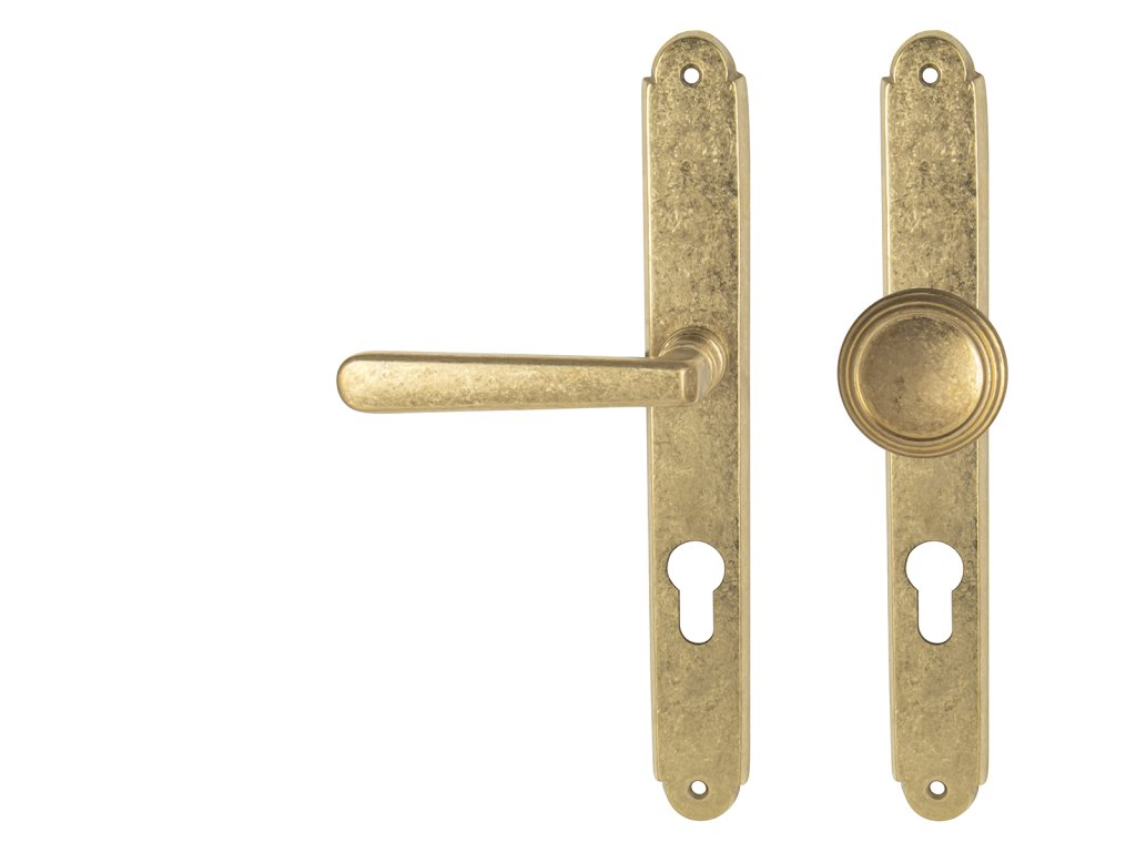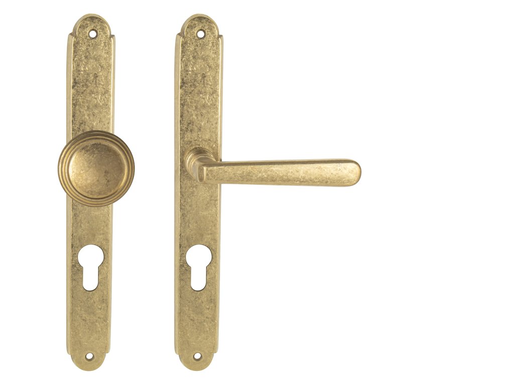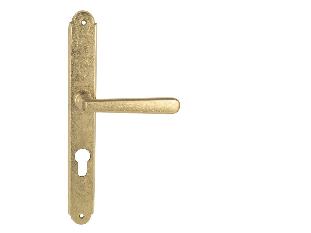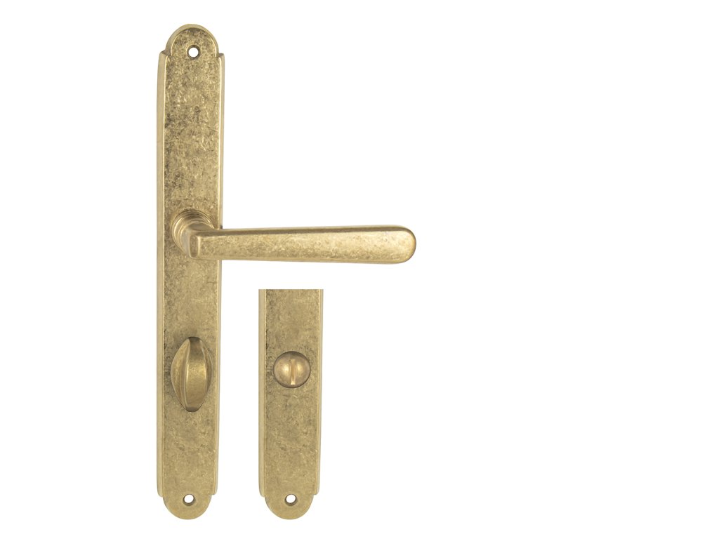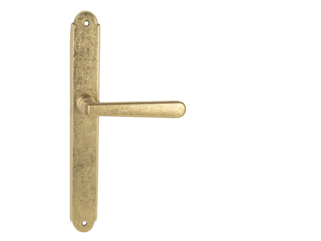 Štítová klika na interiérové dveře s rustikálním štítem je vyrobena z materiálů vysoké kvality - mosaz a je povrchově upravena. Rustikální štít má rozměry 32 mm x 255 mm a klika obsahuje vratný mechanismus.