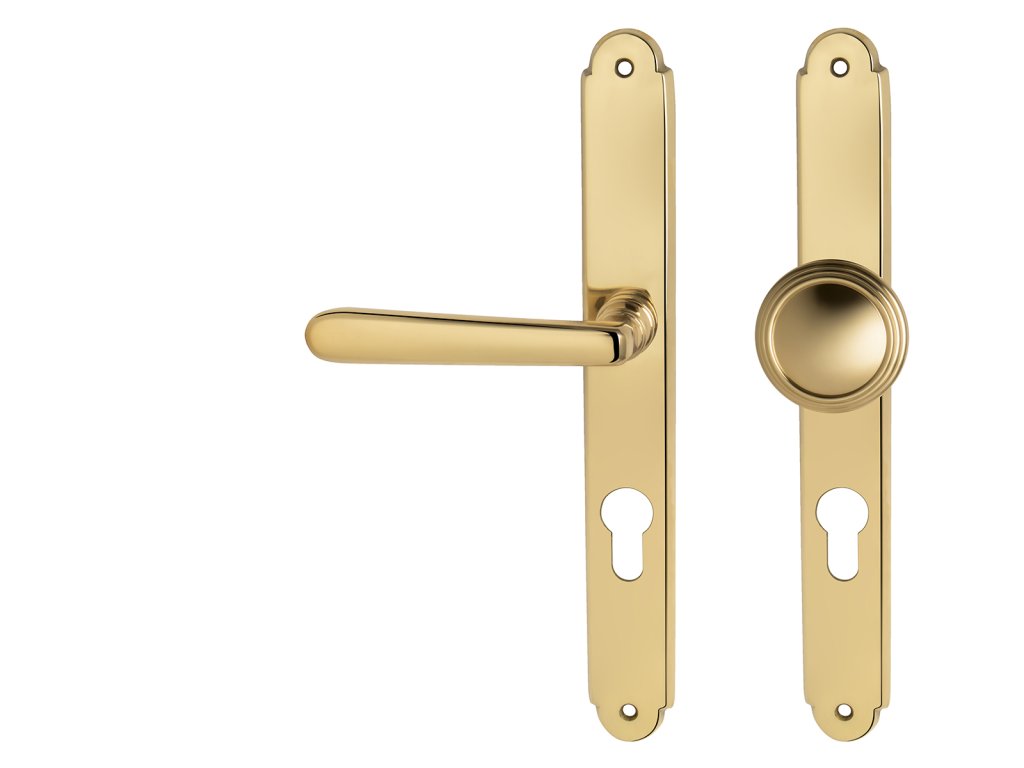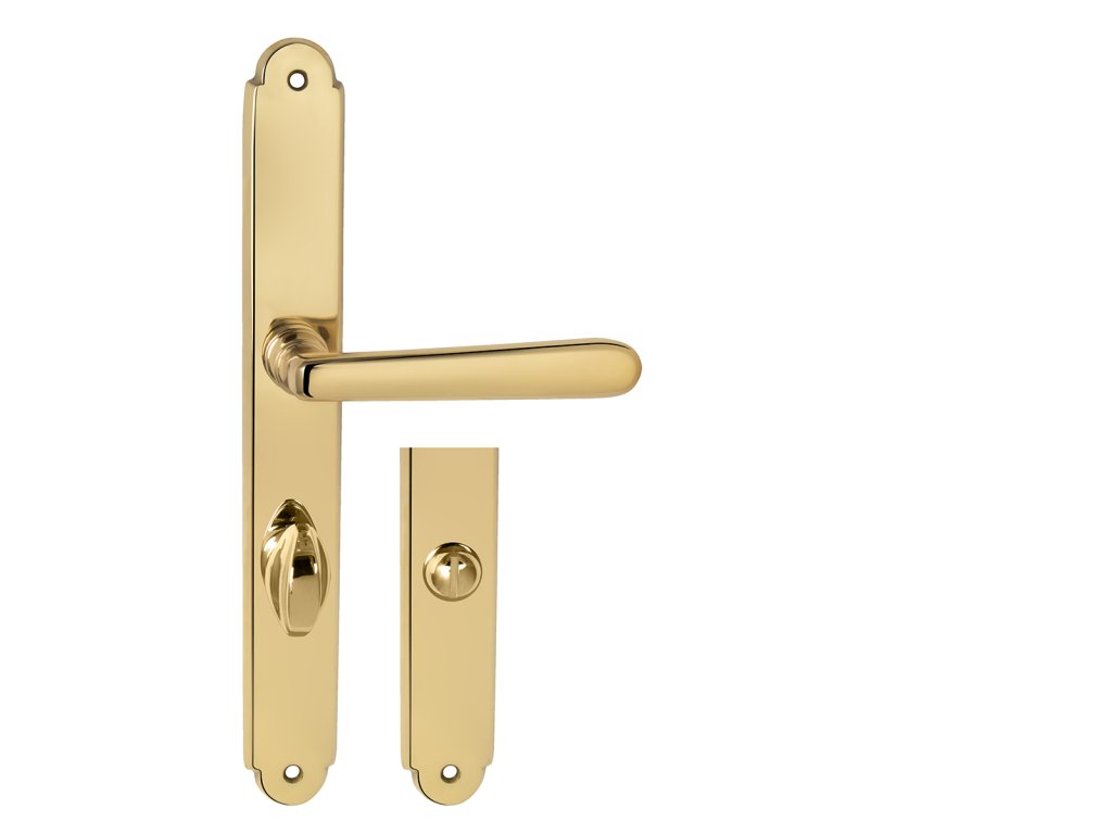 Štítová klika na interiérové dveře s rustikálním štítem je vyrobena z materiálů vysoké kvality - mosaz a je povrchově upravena. Rustikální štít má rozměry 32 mm x 255 mm a klika obsahuje vratný mechanismus.