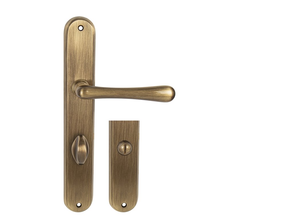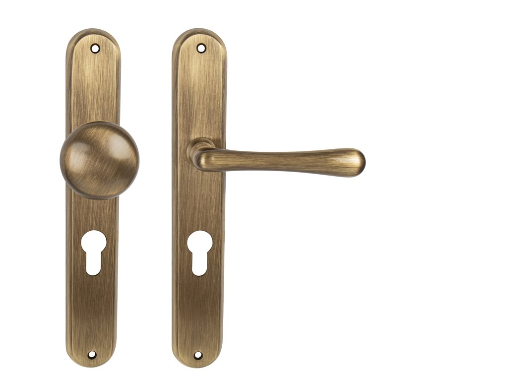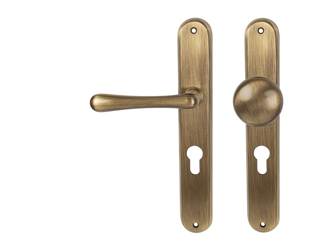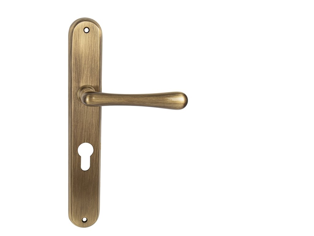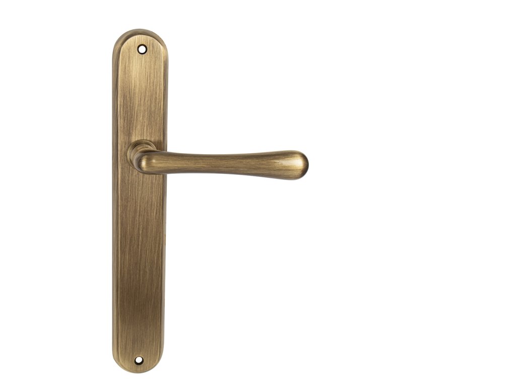 Štítová klika na interiérové dveře s oválným štítem je vyrobena z materiálů vysoké kvality - mosaz a je povrchově upravena. Oválný štít má rozměry 37 mm x 240 mm a klika obsahuje vratný mechanismus.