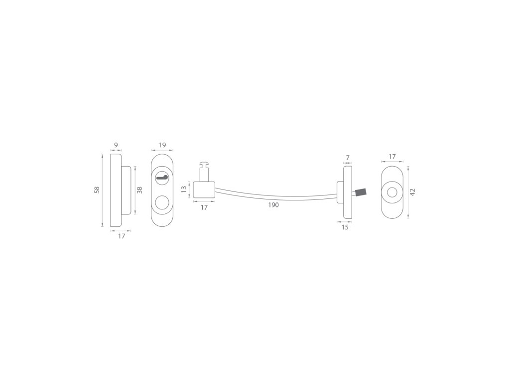 Zámek je vyroben ze slitiny zinku, ocelové lanko z nerezavějící oceli a je odolné do maximální síly 550 kg a nelze jej přeřezat běžnými nástroji. Lanko se standardní délkou 20 cm poskytuje bezpečné otevření okna 10 - 15 cm.