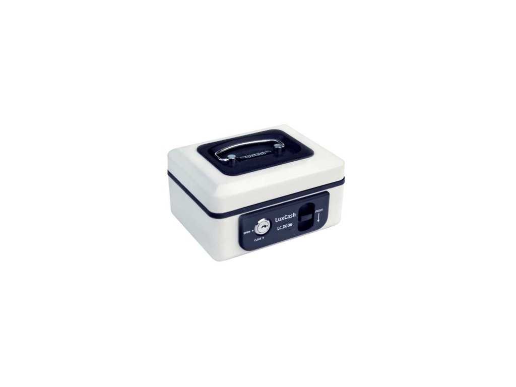 Ocelová pokladnička s páčkou pro pohodlné otevření víka a blokací proti jeho samovolnému zavření.