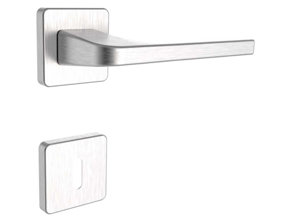 Rozetové kování na dveře se čtvercovými rozetami.