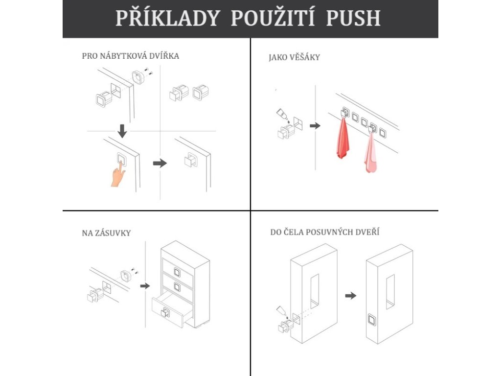 Ovládání pomocí push systému je velmi efektní a uživatelsky příjemné. Díky jednoduchému vzhledu a čistým liniím se hodí do každého interiéru.