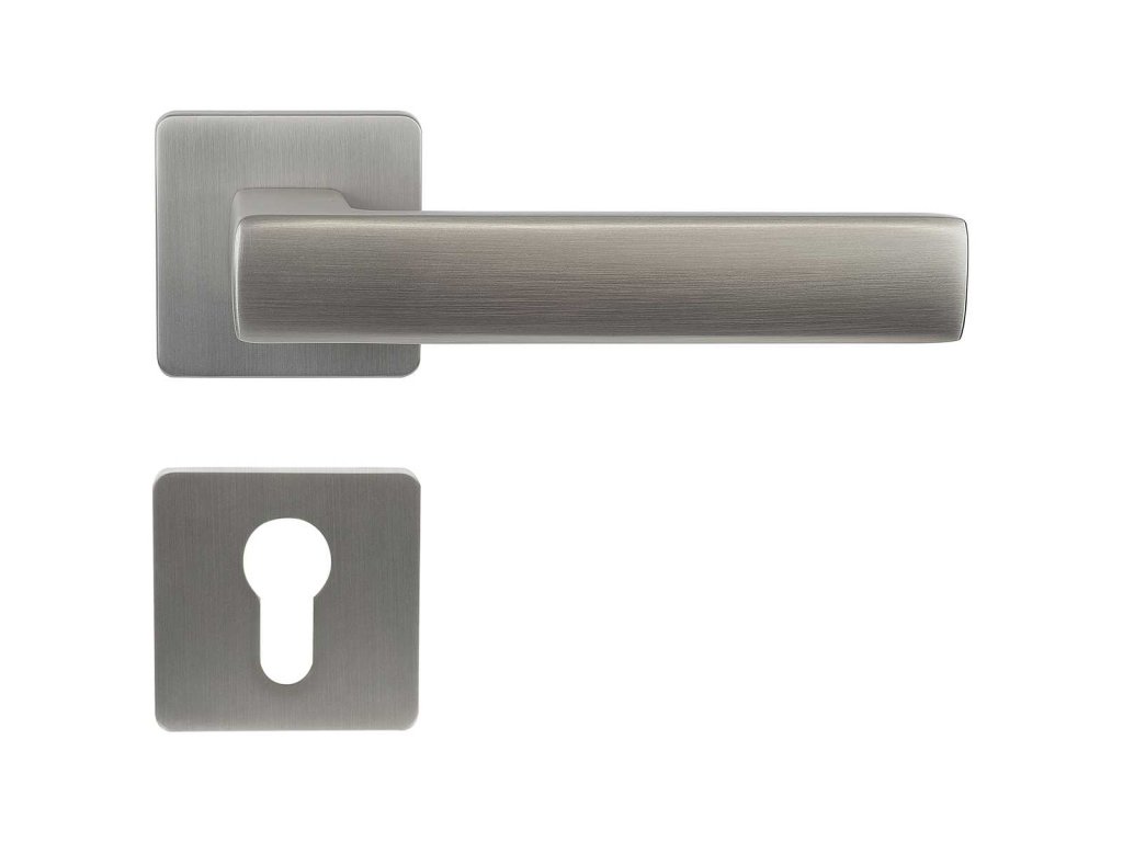 Hliníkové kování na čtvercových rozetách s vratnou pružinou klik.