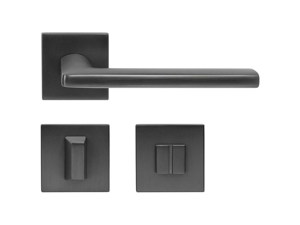 Hliníkové kování na čtvercových rozetách s vratnou pružinou klik - WC