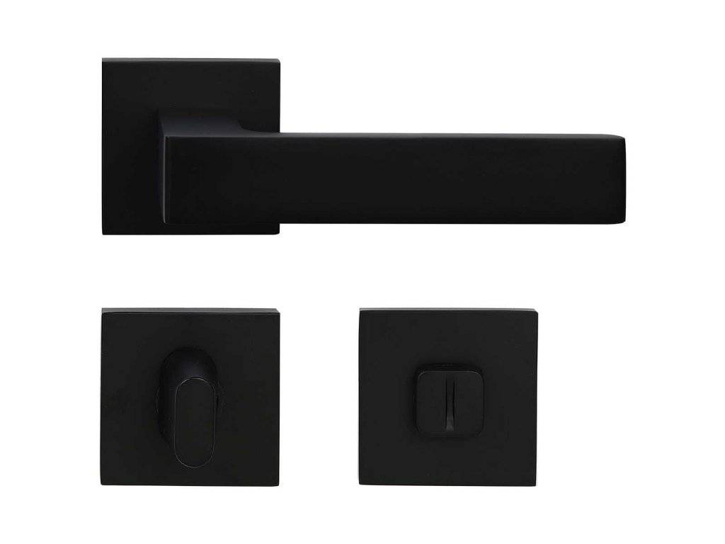 Hliníkové kování economy na čtvercových rozetách s vratnou pružinou klik.
