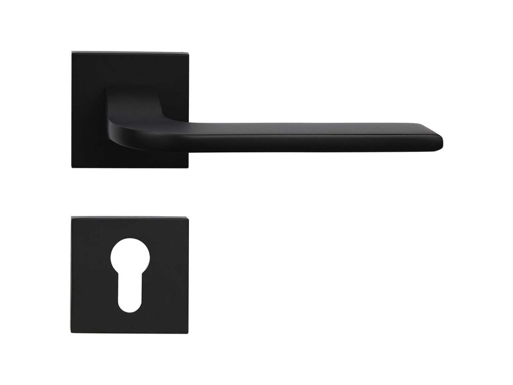 Hliníkové kování economy na čtvercových rozetách s vratnou pružinou klik.