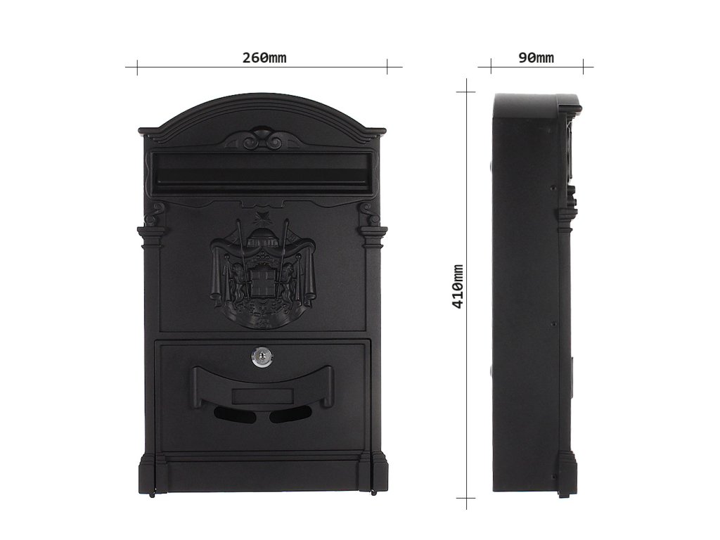Poštovní schránky ASHFORD v rustikálním vzhledu s výrazným dekorativním erbem jsou vyrobené z kvalitního hliníku. Pod erbem je prostor na jmenovku a ve spodní časti schránky jsou dva otvory, které vám prozradí, jestli schránka obsahuje poštu. Schránku je možné upevnit na fasádu domu nebo na stěnu pomocí přibaleného kotvícího materiálu.