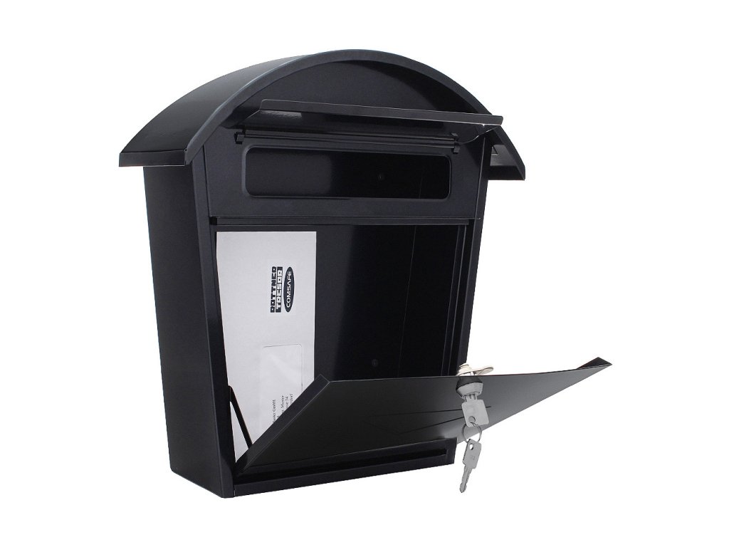 Poštovní schránka JESOLO je vyrobená z oceli a je odolná vůči nepříznivým povětrnostním vlivům. Přední vhoz je chráněný stříškou je ideální pro formát do velikosti max A4. Poštu jednoduše vyberete díky předním dvířkám, které se odklápějí směrem dolů. Součástí balení je i upevňovací materiál na stěnu.