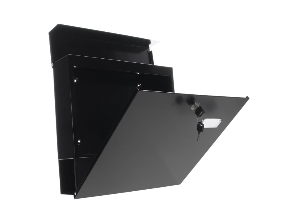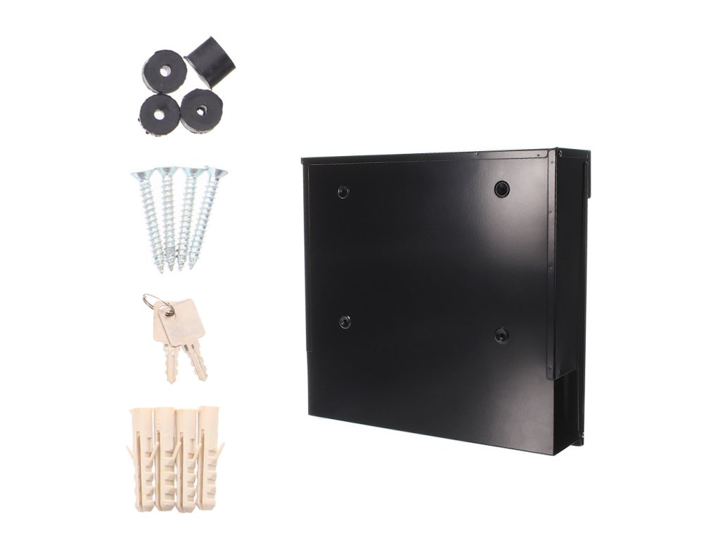 Černá poštovní schránka KENSINGTON v moderním hranatém designu je vyrobená z kvalitního materiálu - nerezavějící oceli. Je odolná vůči nepříznivým povětrnostním vlivům. Horní vhoz je chráněný stříškou před dešťovou vodou a nečistotami. Poštu jednoduše vyberete díky velkým předním dvířkám, které se odklápějí směrem dolů. V pravé horní části schránky je prostor na jmenovku. Schránka je doplněná v dolní časti o box na noviny a časopisy. Součástí balení je i upevňovací materiál na stěnu.