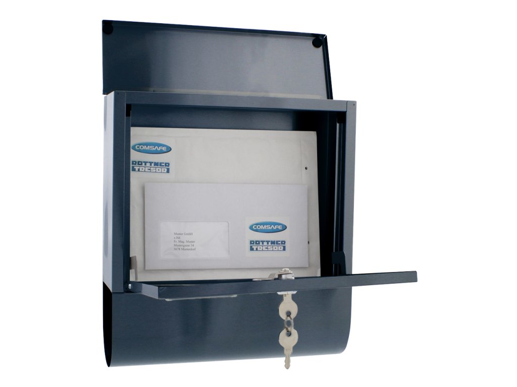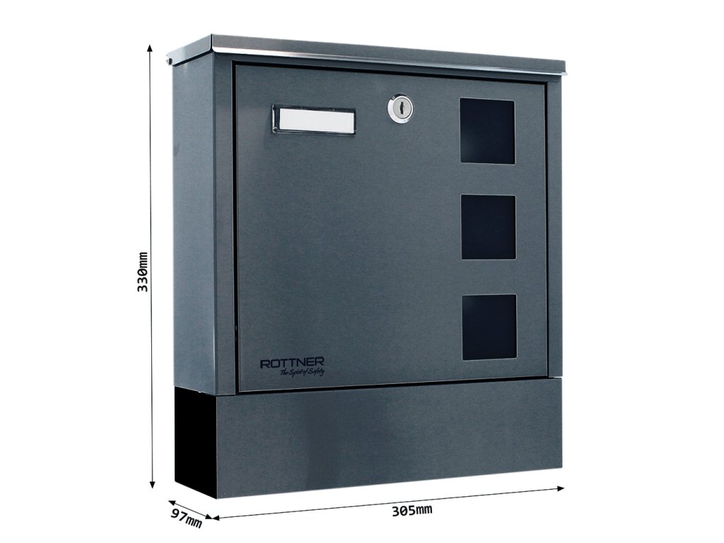 Ocelová poštovní schránka LAGO má horný vhoz s krytkou, která chrání zásilky před deštěm a nečistotami. Poštu jednoduše vyberete díky velkým předním dvířkám, které se odklápějí směrem dolů. V levé horní části schránky je prostor na jmenovku. Schránka je doplněná v dolní části o box pro noviny a časopisy. Tři transparentní okénka rychle prozradí, jestli schránka obsahuje poštu. Součástí balení je i upevňovací materiál, pomocí kterého lehce upevníte schránku na stěnu přes otvory na zadní straně.