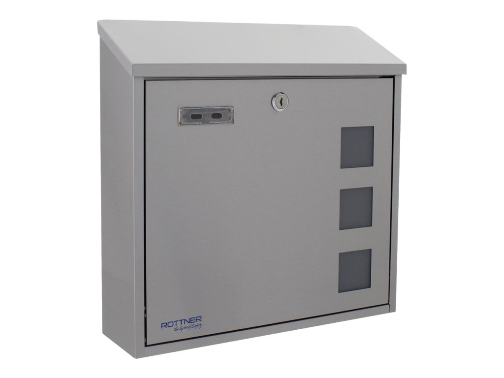 Poštovní schránka MURO je vyrobená z kvalitního materiálu - nerezavějící oceli. Má horní vhoz s krytkou, která chrání zásilky před deštěm a nečistotami. Poštu jednoduše vyzvednete díky velkým předním dvířkám, které se odklápějí směrem dolů. V levé horní časti schránky je prostor na jmenovku. Tři transparentní okénka rychle prozradí jestli schránka obsahuje poštu. Součástí balení je i upevňovací materiál, pomocí kterého lehce upevníte schránku na stěnu přes otvory na zadní straně.
