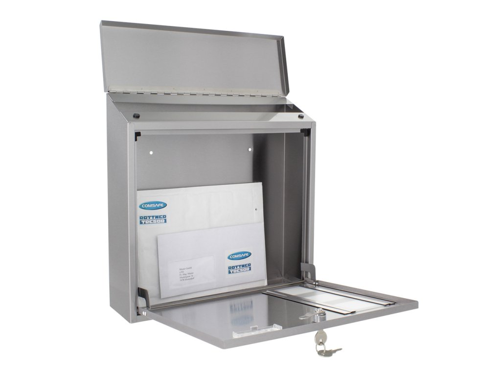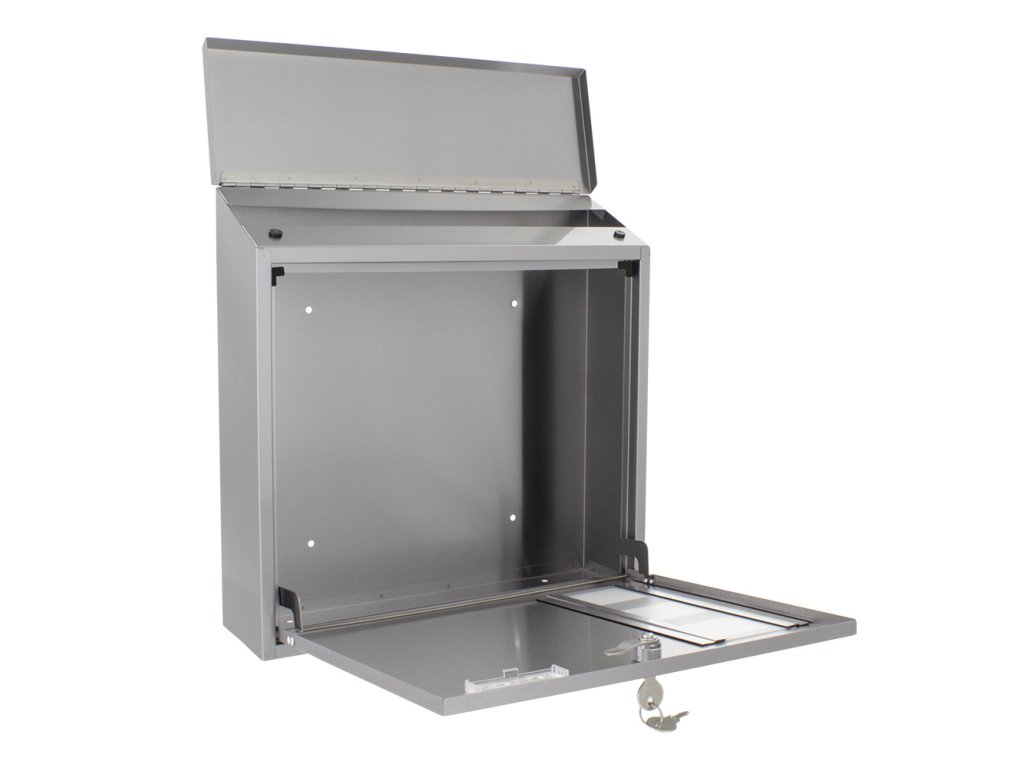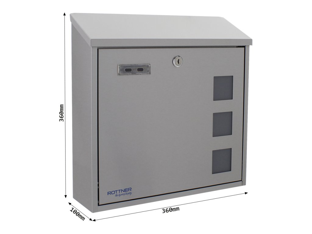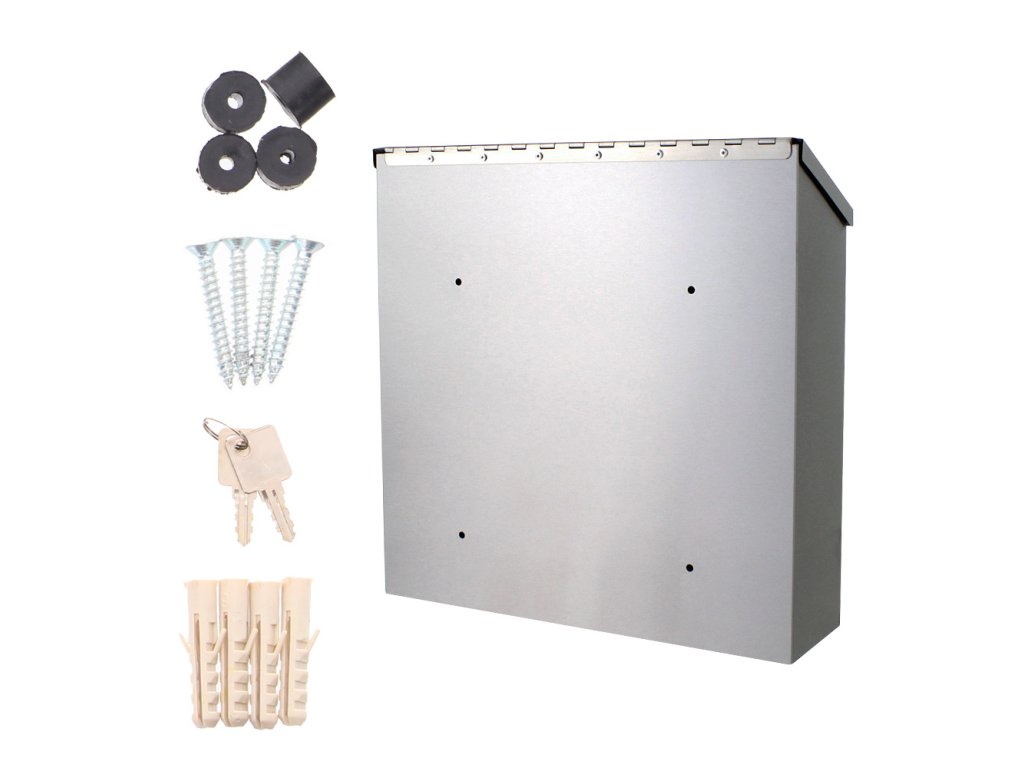 Poštovní schránka MURO je vyrobená z kvalitního materiálu - nerezavějící oceli. Má horní vhoz s krytkou, která chrání zásilky před deštěm a nečistotami. Poštu jednoduše vyzvednete díky velkým předním dvířkám, které se odklápějí směrem dolů. V levé horní časti schránky je prostor na jmenovku. Tři transparentní okénka rychle prozradí jestli schránka obsahuje poštu. Součástí balení je i upevňovací materiál, pomocí kterého lehce upevníte schránku na stěnu přes otvory na zadní straně.