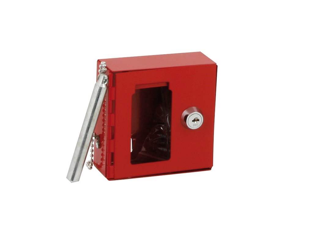 Skříňka na požární klíč je vyrobena z ocelového plechu ošetřeného práškovou vypalovací barvou - signální červená.