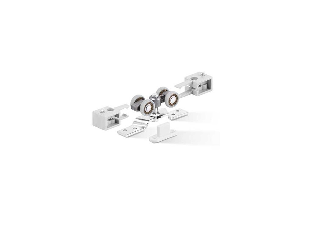 Balení obsahuje: 2x mechanizmus s kolečky, 2x zarážku dveří, 1x plastový vodič dveří.