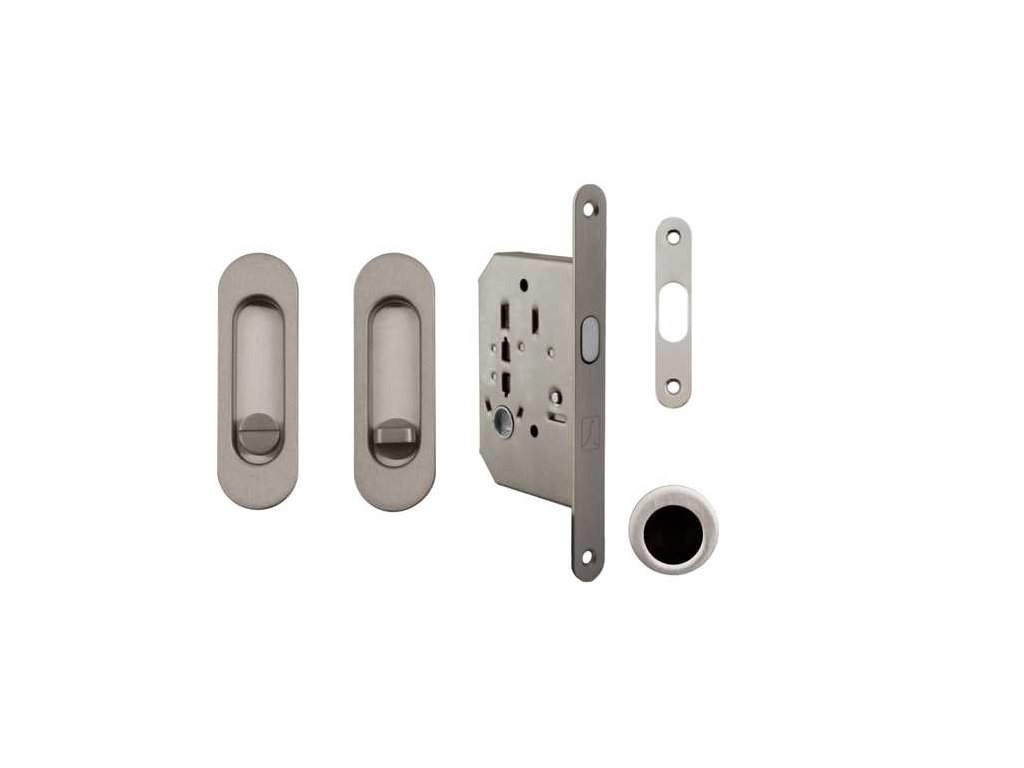 Sada na posuvné dveře FT WC ovál (zámek+mušle+náprstek) matný nikl ONS 125x40mm