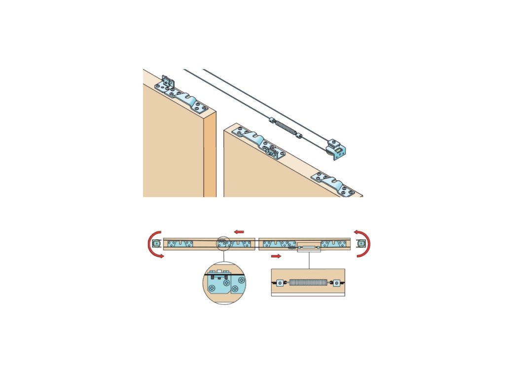 Při koupi setů SILENT 100 pro dvoukřídlé dveře se systémového SINCRO sladit otevírání dvoukřídlých dveří současně. Díky tomuto systému dosáhnete pohodlné současné ovládání obou dveří pro ještě vyšší komfort. Systém SINCRO je možné použít pro všechny typy horních vodících profilů a systémů SILENT 100 bez nebo se zpomalovači a s různou váhou křídel dveří do 40 - 80 - 100 - 120 kg.