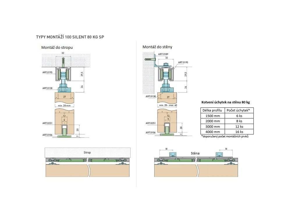 SC – posuvný systém SERIES 100 SILENT pro jednokřídlé dveře 1D 2000/80 obsahuje: