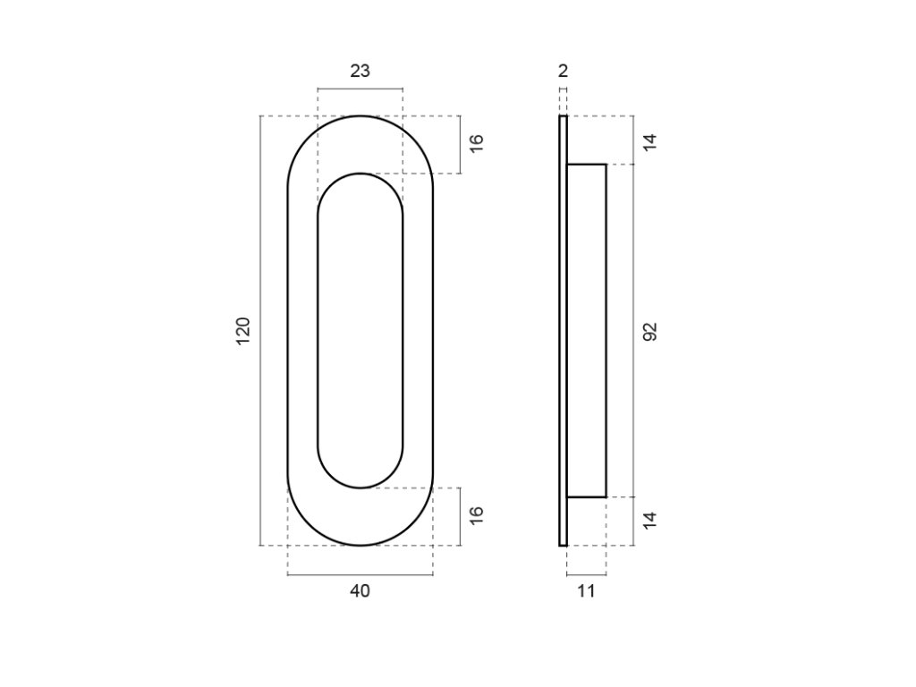 Oválná mušle bez otvoru na posuvné dveře je vyrobená z vysoce kvalitní nerezavějící oceli, známé jako nerez a je povrchově upravená.