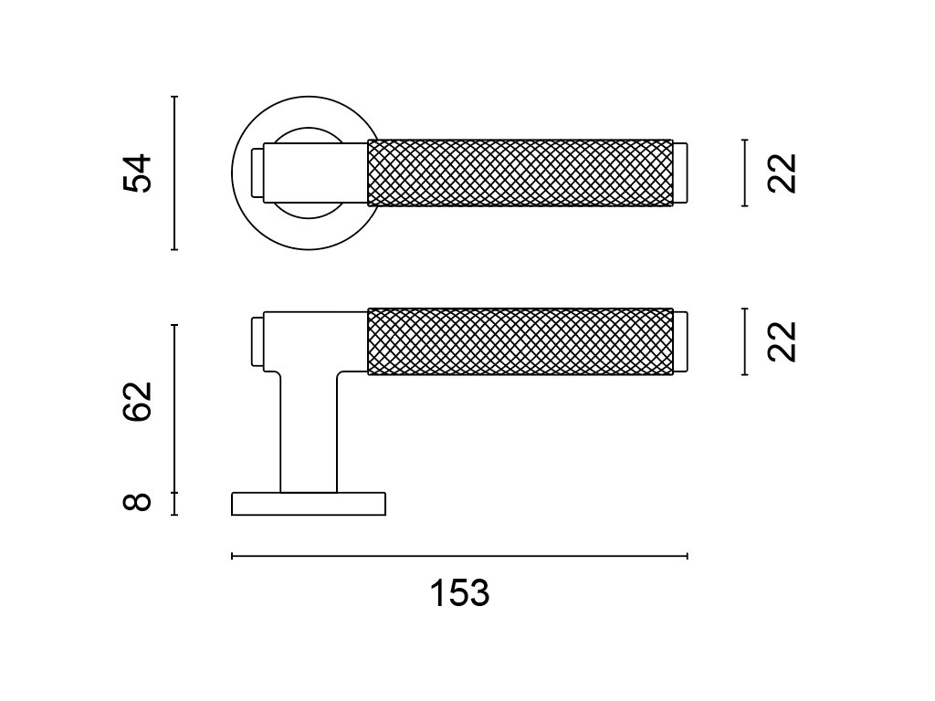 Kování je dodáváno se šrouby a čtyřhranem (8x8 mm) pro max. tloušťku dveří 43 mm.
