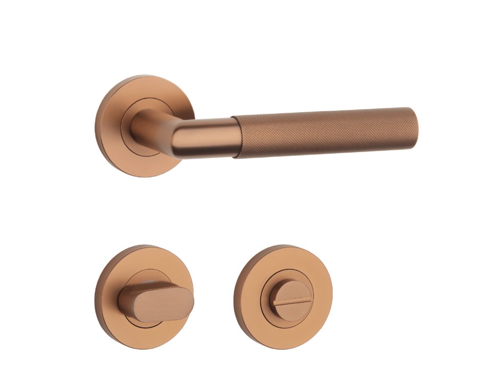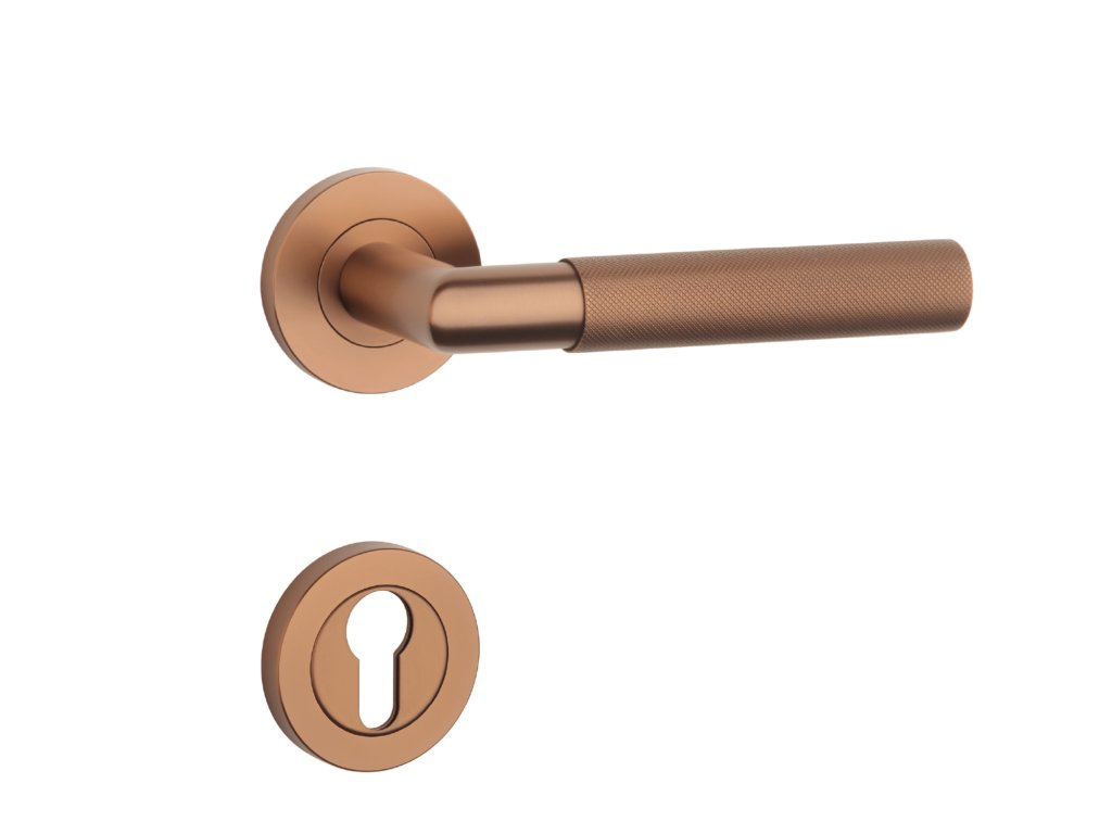 Rozetová klika na interiérové dveře s kulatou rozetou je vyrobena z kvalitní nerezavějící oceli s povrchovou úpravou, která zaručuje dlouhou životnost a moderní vzhled. Klika je vybavena dvojitými, samonivelačními kovovými pružinami a kliky dveří jsou trvale spojeny s kovovými adaptéry, což zaručuje prakticky celoživotní používání v domácích podmínkách.