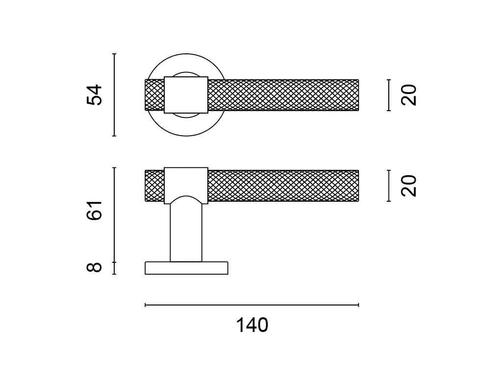 Kování je dodáváno se šrouby a čtyřhranem (8x8 mm) pro max. tloušťku dveří 43 mm.