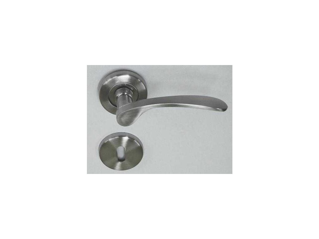 Sada obsahuje pár kulatých štítů pod kliku, pár kulatých štítů na otvor na zámek, sadu dvou klik a příslušenství k namontování na dveře.