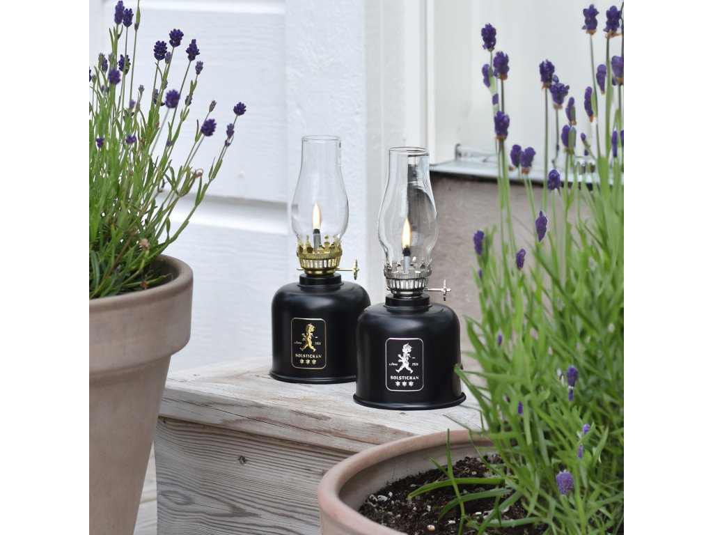Olejová lampa je praktická a elegantní kovová lampa, kterou zdobí zlatý emblém ikonického chlapce Solsticke. Petrolejové lampy slouží jako primární zdroje světla určené k osvětlení míst, kde není elektřina. Tato lampa je nejen funkčním zdrojem světla, ale také elegantním dekorativním prvkem, který oživí váš interiér nebo exteriér, například na balkoně nebo terase, na letní chatě nebo v menších lodičkách. Petrolejové lampy lze použít i v případě výpadku proudu, neboť poskytují velmi dobré světlo.